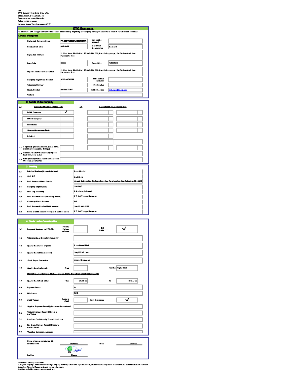 Form KYC PT DTS - Indonesia - TO: PPT Energy Trading Co., Ltd ...