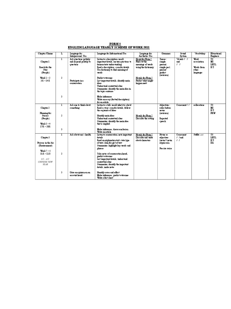 Scheme of Work For Form 5 | PDF | Language Mechanics | Grammar