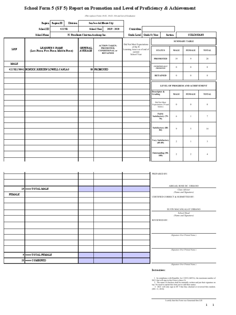 DepEd School Form 5: Report on Promotion and Learning Progress ...