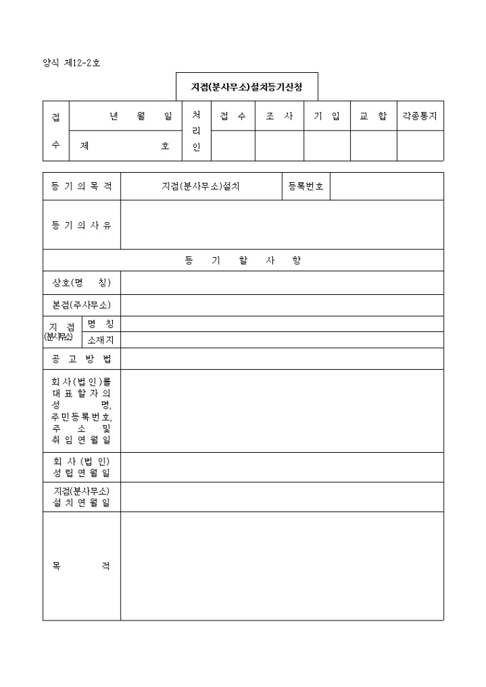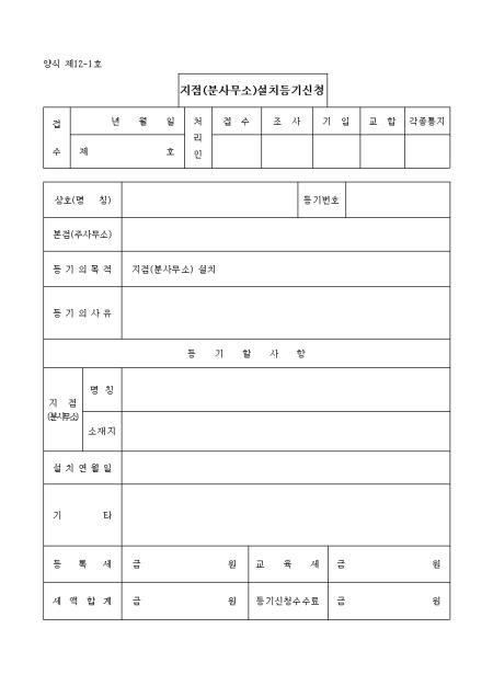 지점(분사무소)설치 등기신청서 샘플, 양식 다운로드