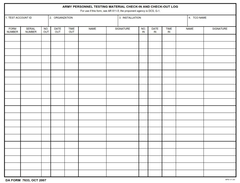 DA Form 7634 - Army Personnel Testing Test Log | Free Online Forms
