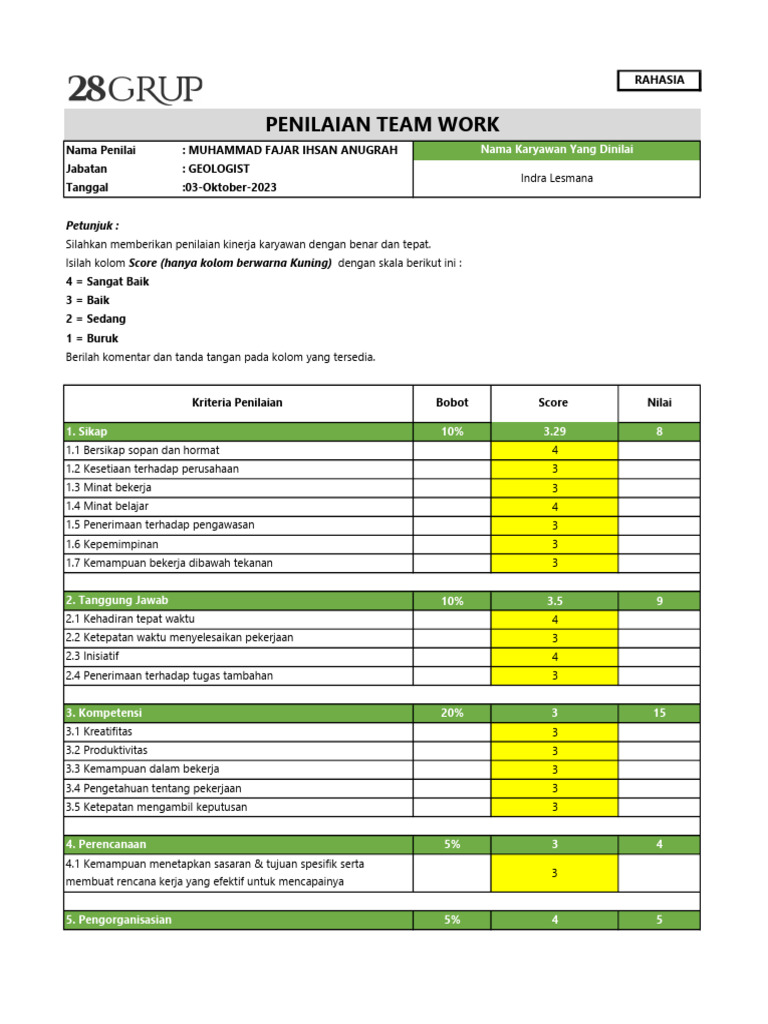 Form Penilaian Teamwork - Indra Lesmana | PDF