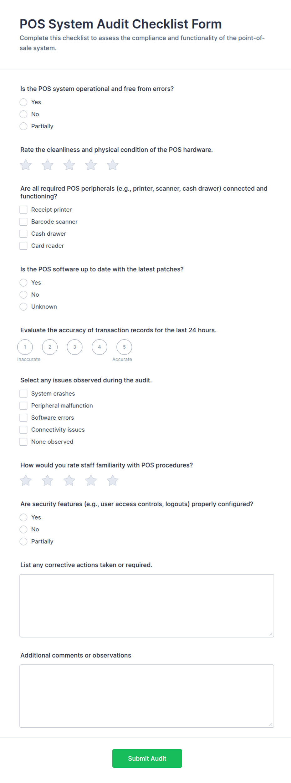 POS System Audit Checklist Form Template | Jotform