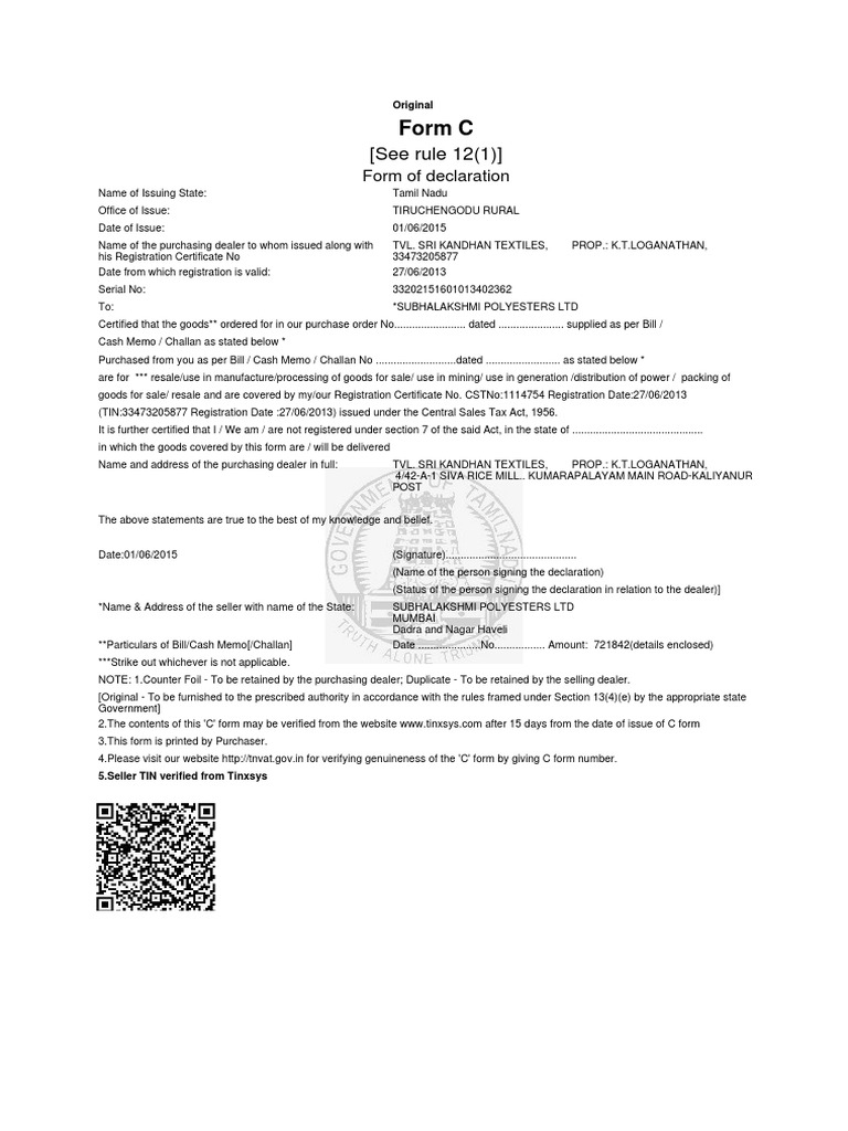 Issuance and use of Form C declaration under CST