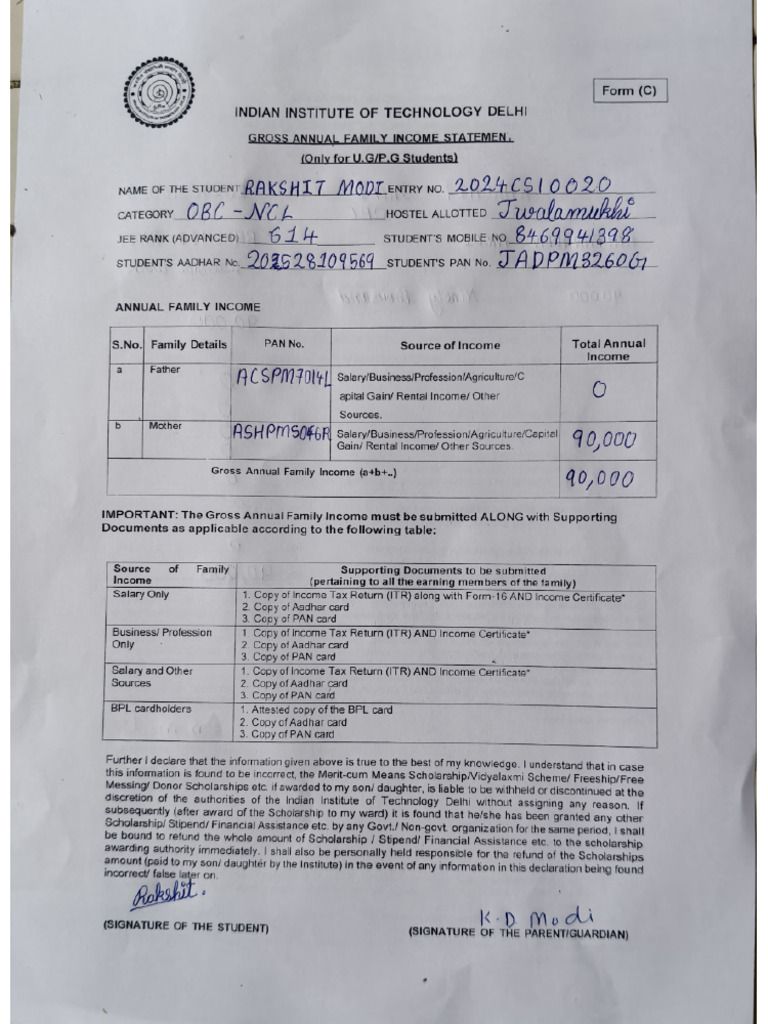 Form-C - Application/declaration Of The Applicant For Obtaining Income ...