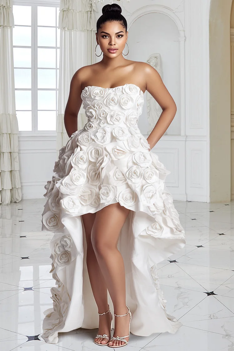 Xpluswear Design Plus Size Wedding Elegant White Strapless 3D High Low ...