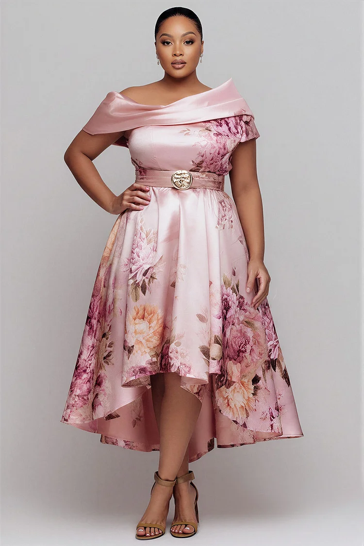 Xpluswear Design Plus Size Cocktail Party Elegant Pink Floral Oblique ...