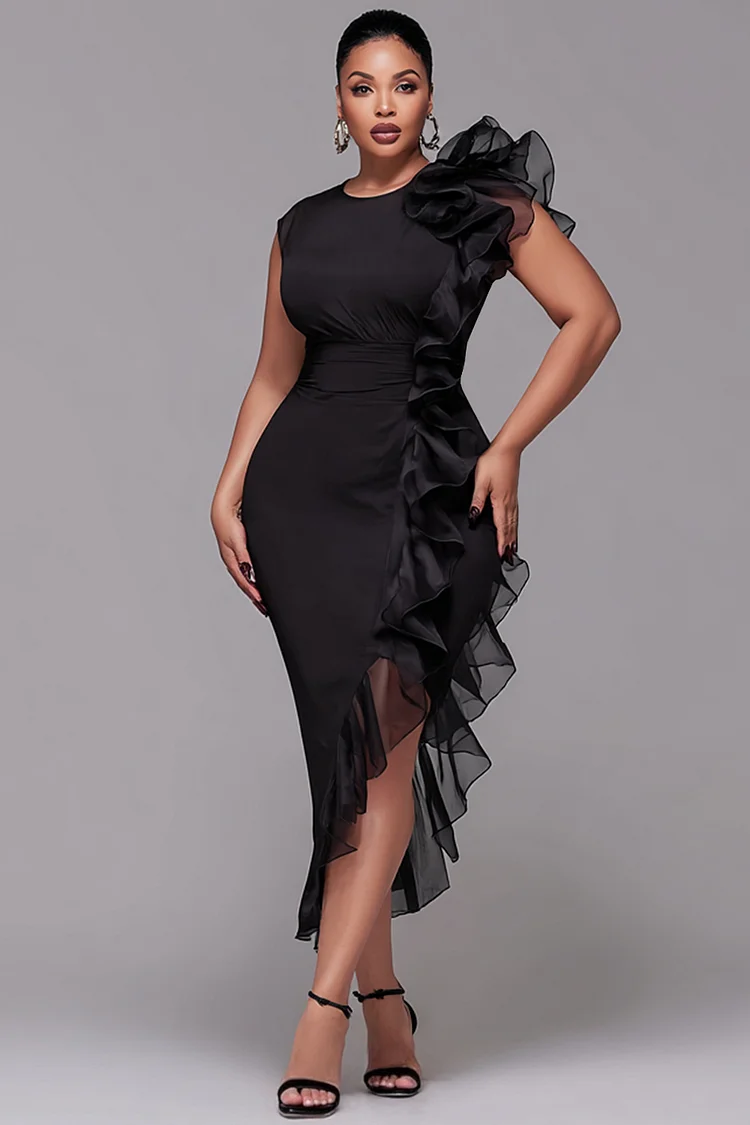 Xpluswear Design Plus Size Wedding Guest Elegant Black Round Neck ...