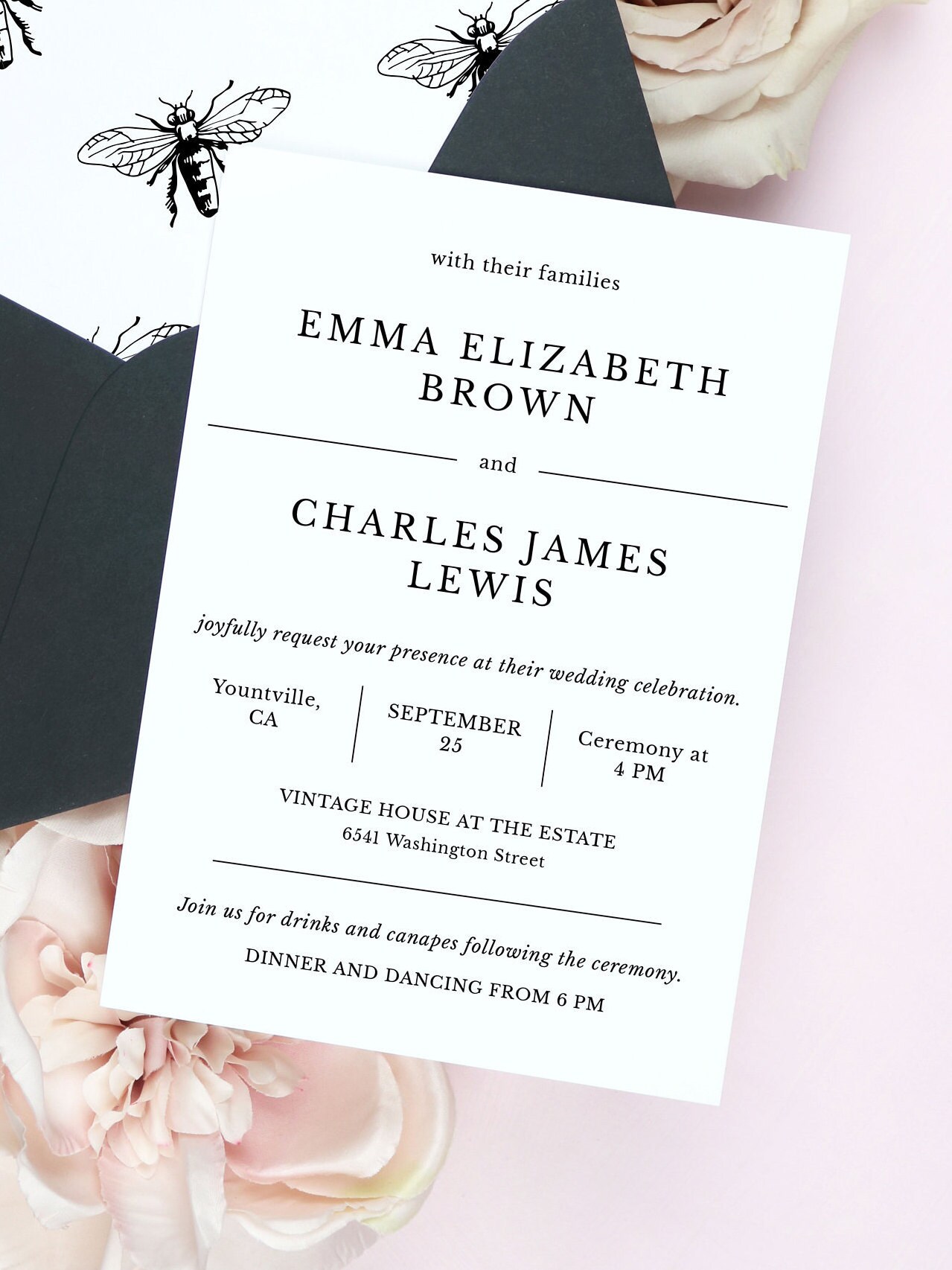 Classic Elegant Wedding Invitation Editable Template, Formal Wedding ...