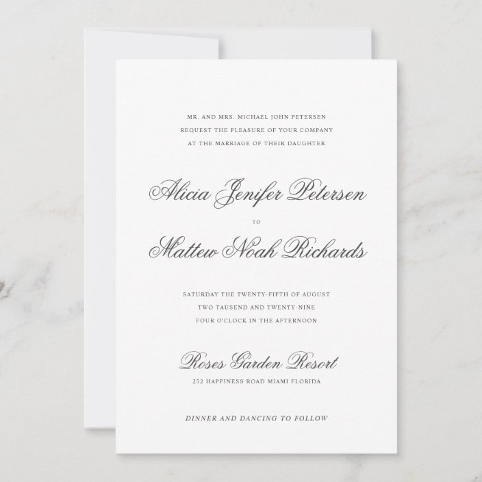 Simple elegant classic formal calligraphy wedding invitation | Zazzle.com