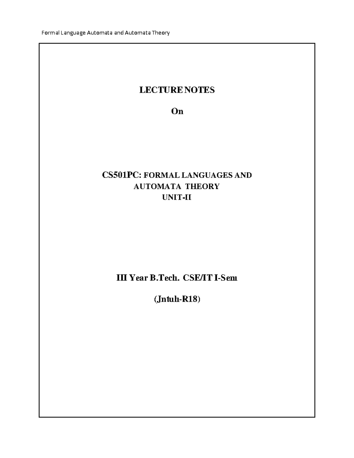 Formal Language Automata and Automata Theory LECTURE NOTES CS501PC ...