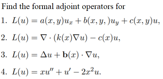 Solved Find the formal adjoint operators for 1. L(u) = a(x, | Chegg.com