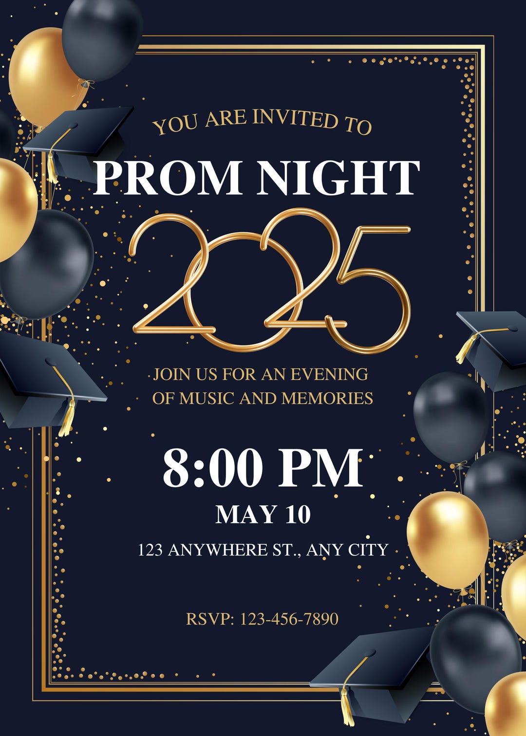 Elegant Prom Invitation Template in Navy Blue and Gold, Formal Prom Ni