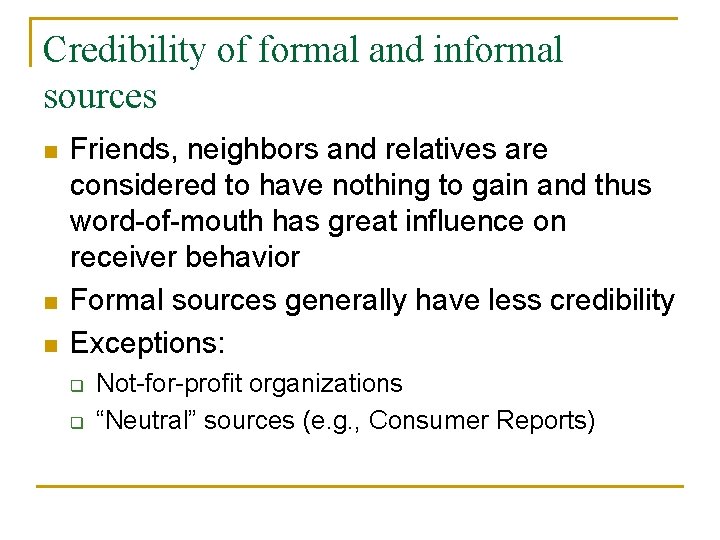 Why the are formal sources of credit preferred over the informal ...