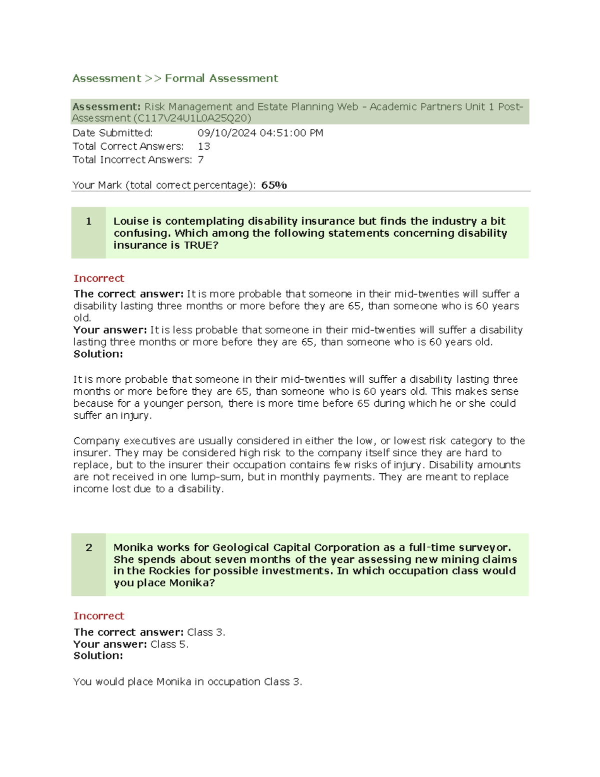 Formal Assessment 1 - Assessment >> Formal Assessment Assessment: Risk ...