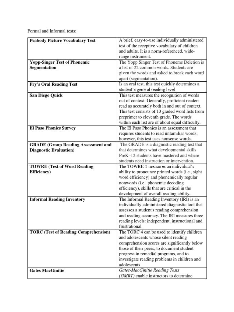 Edes 6359 - Informal Formal Tests | PDF | Reading (Process) | Reading ...