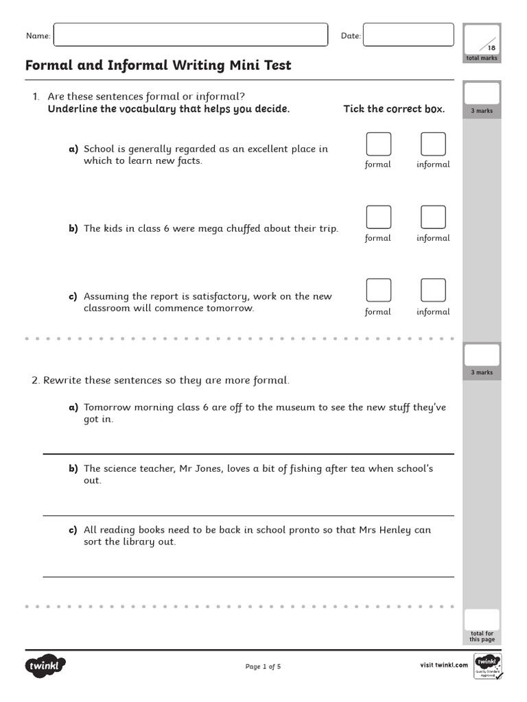t2 e 1891 Formal and Informal Writing Test Ver 2 | PDF | Grammar ...