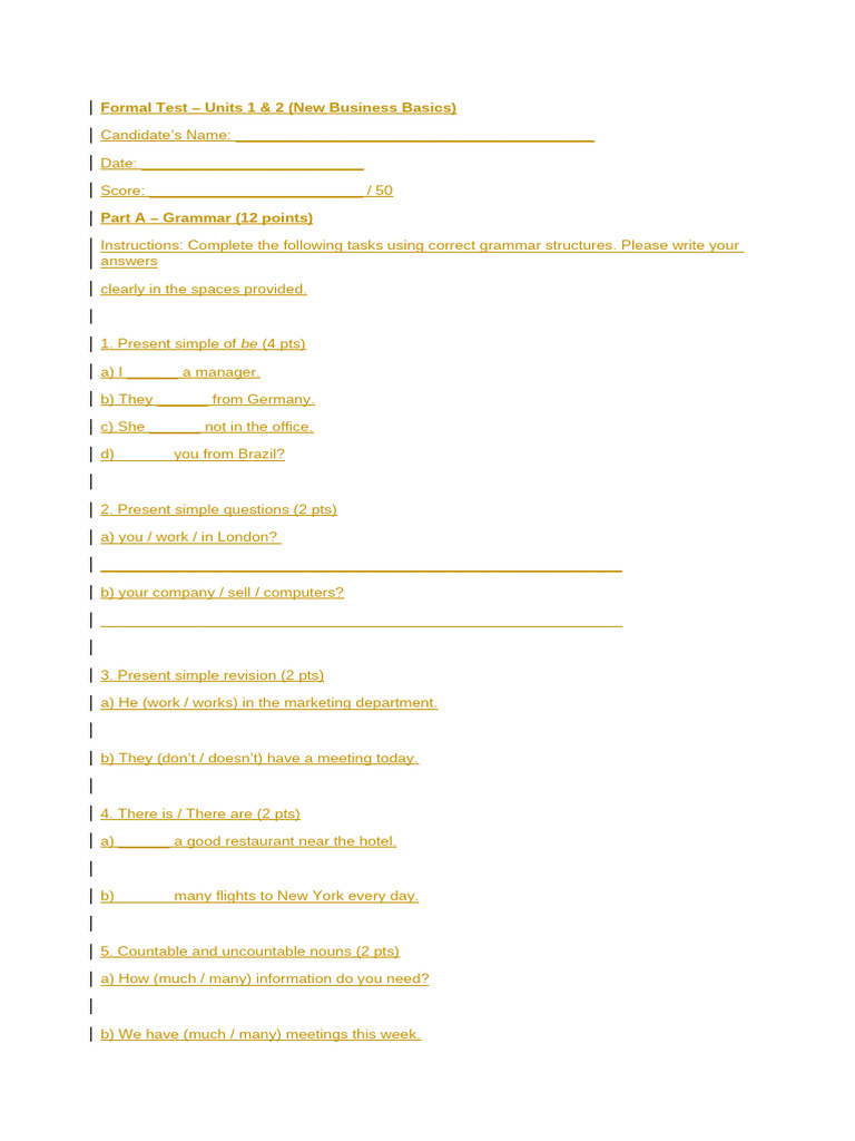 Formal Test - Units 1 & 2 (New Business Basics) | PDF | Linguistics