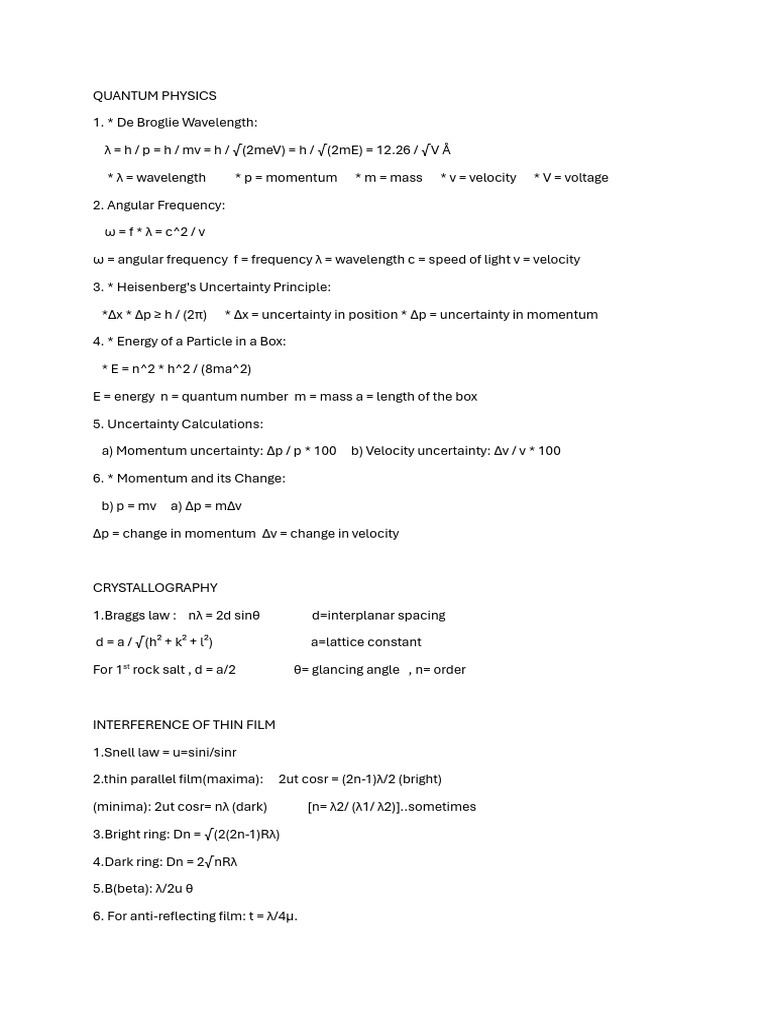 Formula Physics1 | PDF | Uncertainty Principle | Wavelength