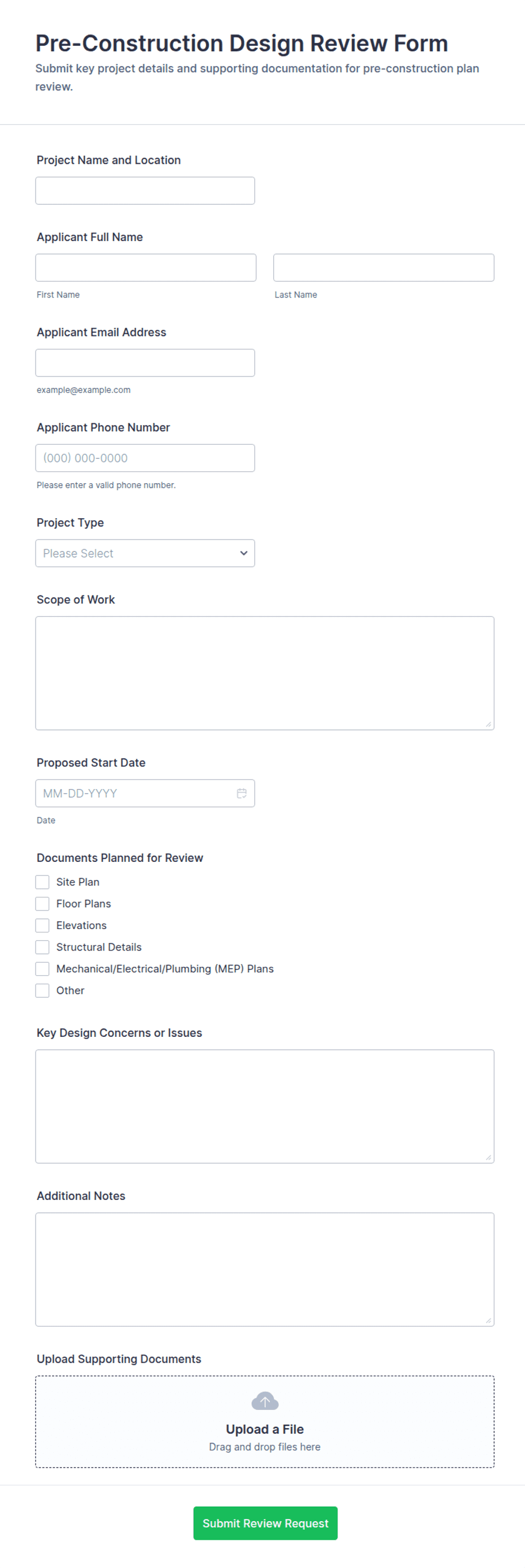 Pre-Construction Design Review Form Template | Jotform
