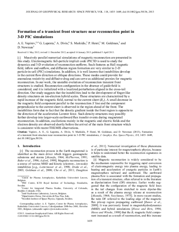 (PDF) Formation of a transient front structure near reconnection point ...
