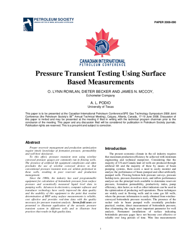 (PDF) Pressure Transient Testing Using Surface Based Measurements