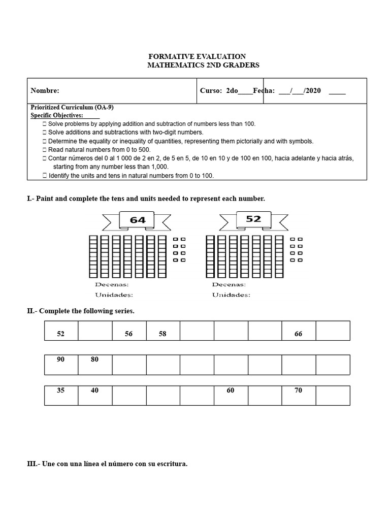 Formative Evaluation Mathematics 2nd Grade 1 | PDF