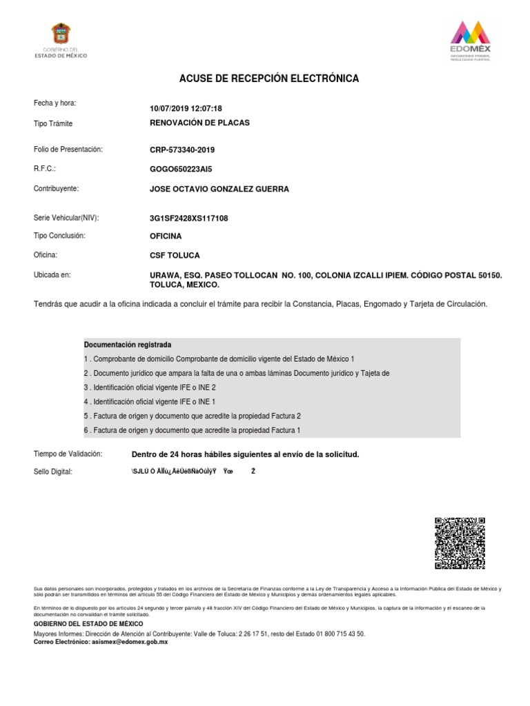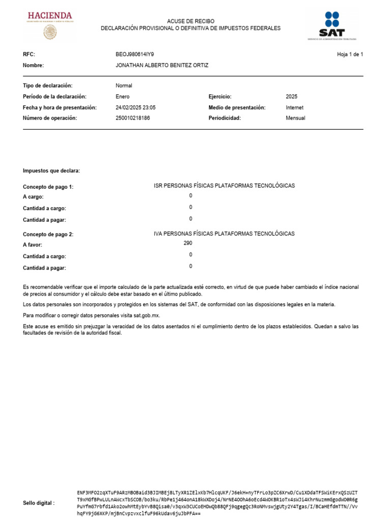 Acuse de recibo de declaración mensual IVA (normal y complementaria ...