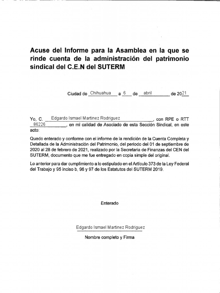 Acuse de Entrega de Tarjeta Copa Trust RTM 2020 | PDF