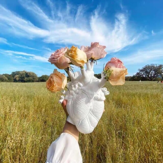 Vaza decorativa in forma de inima anatomica, Ornament de flori, Alba ...