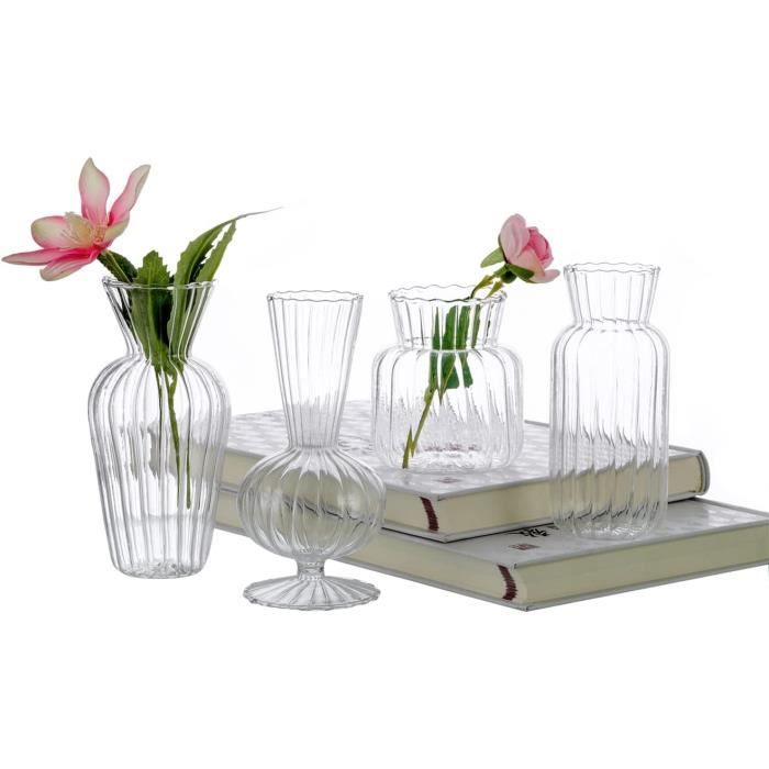 Lot de 4 vases à fleurs en verre transparent, forme géométrique rayée ...