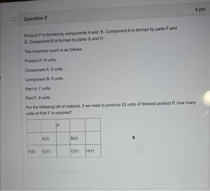 Solved Product P is formed by components A and B. Component | Chegg.com
