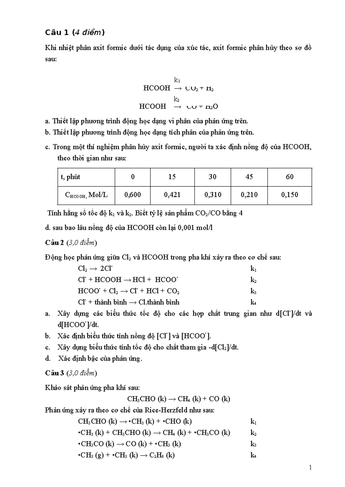 TK 2 03 - Động Học Phản Ứng Axit Formic và Cl2 - Studocu