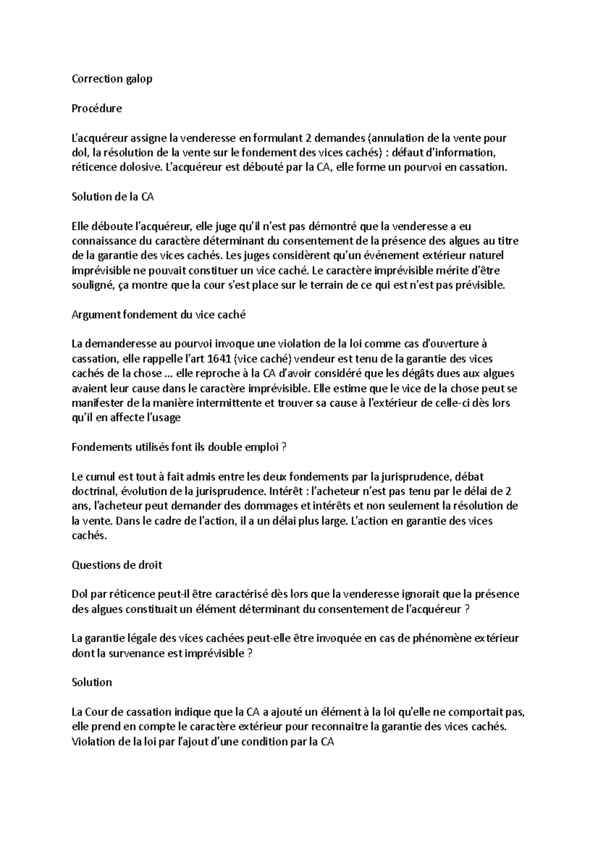 Correction galop - Correction galop Procédure L’acquéreur assigne la ...