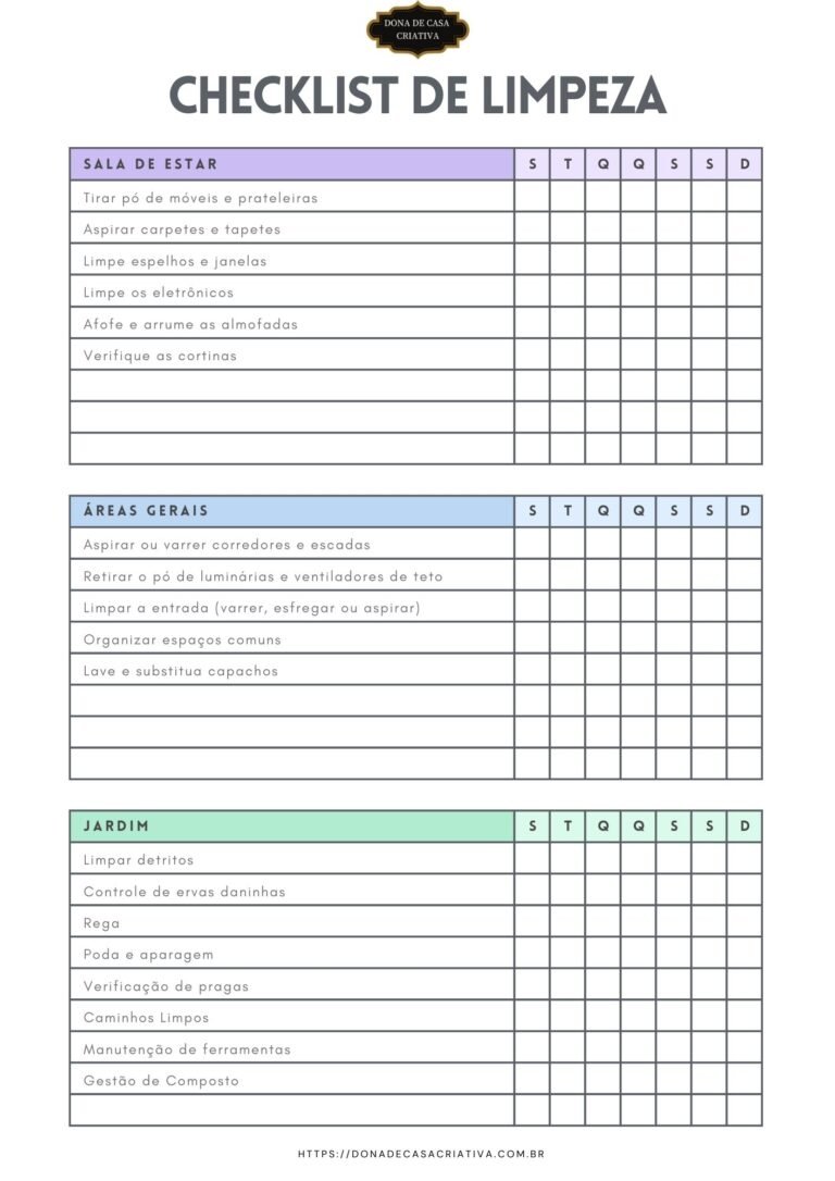 Checklist De Limpeza Para Imprimir - DONA DE CASA CRIATIVA
