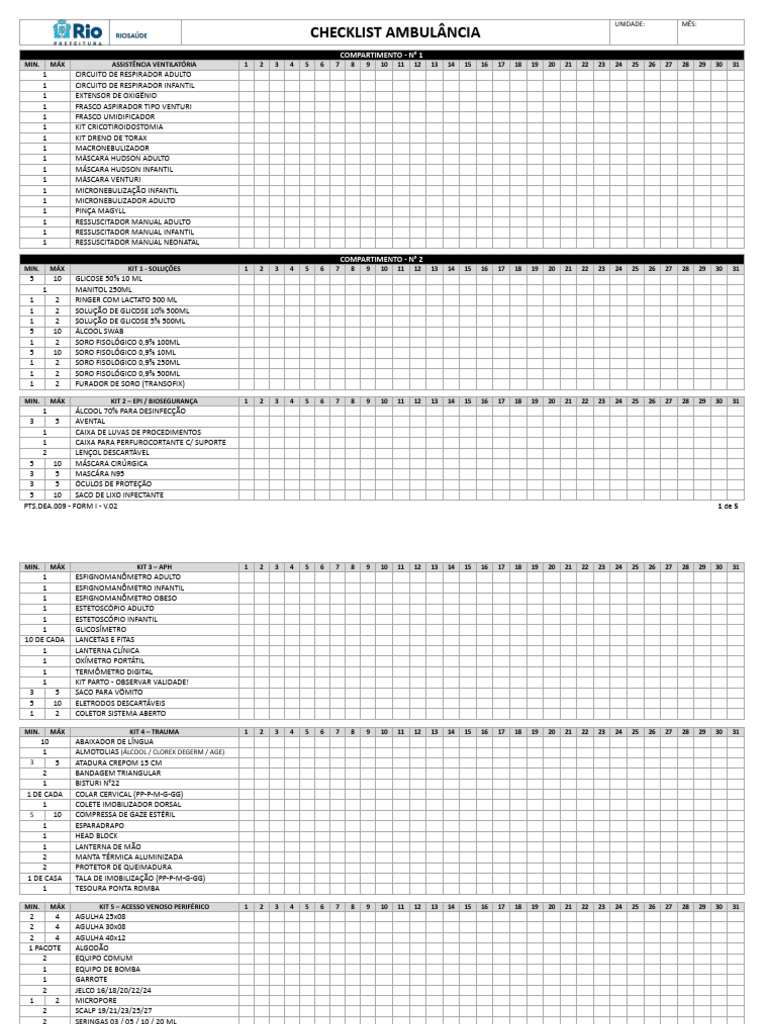 Formulario Checklist Ambulancia | PDF | Engenharia Química | Medicina ...