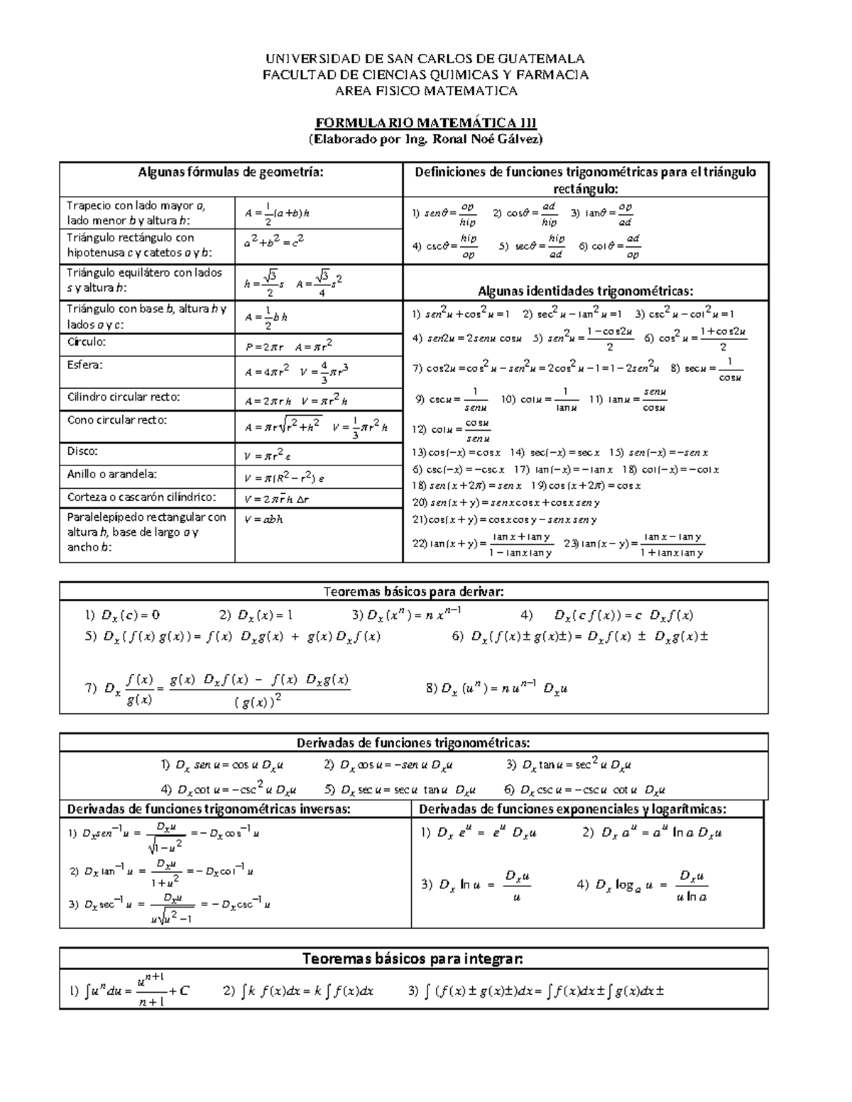 Formulario Matematicas III - FORMULARIO MATEMÁTICAS III Ing. Miguel ...