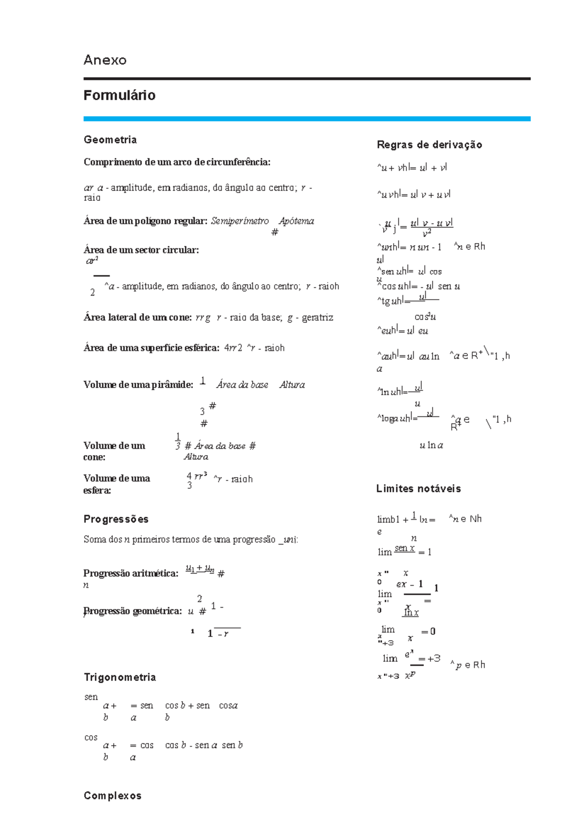 SOLUTION: Formulário matemática - Studypool