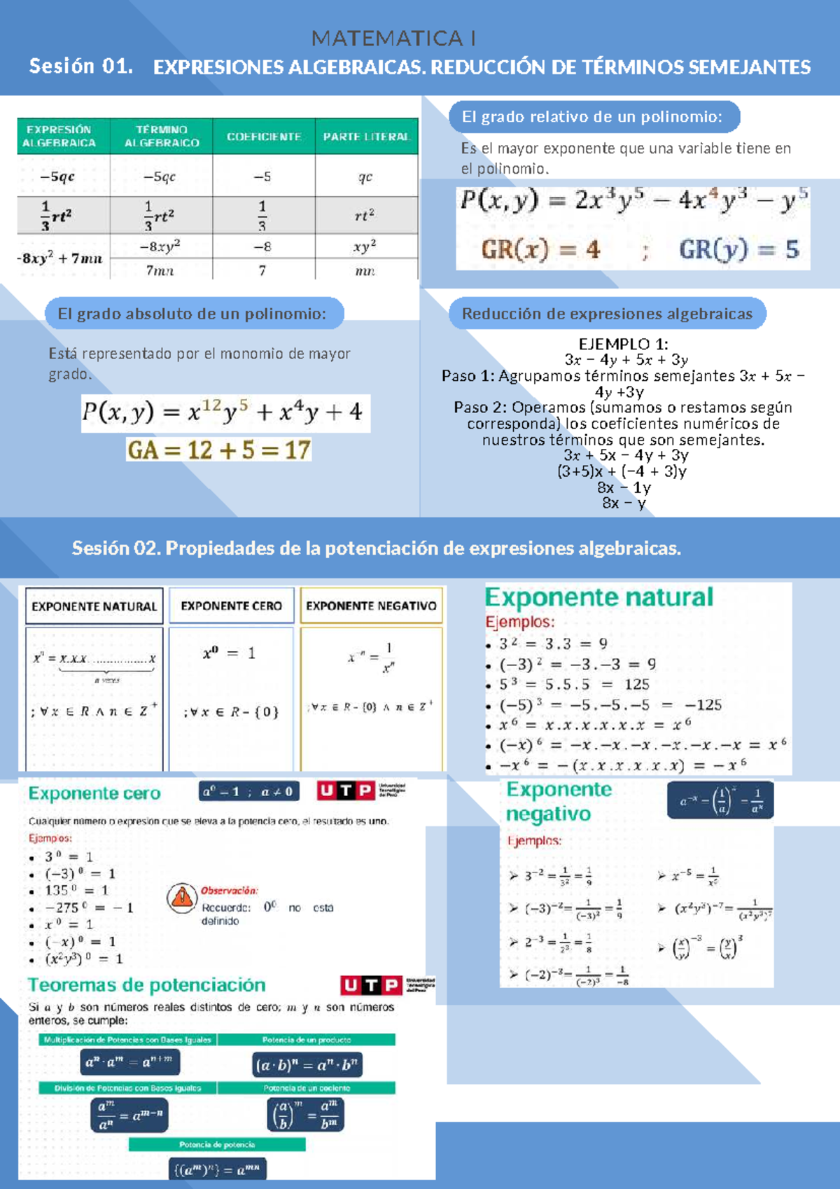 Formulario MATEMATICA I - Expresiones Algebraicas y Propiedades - Studocu