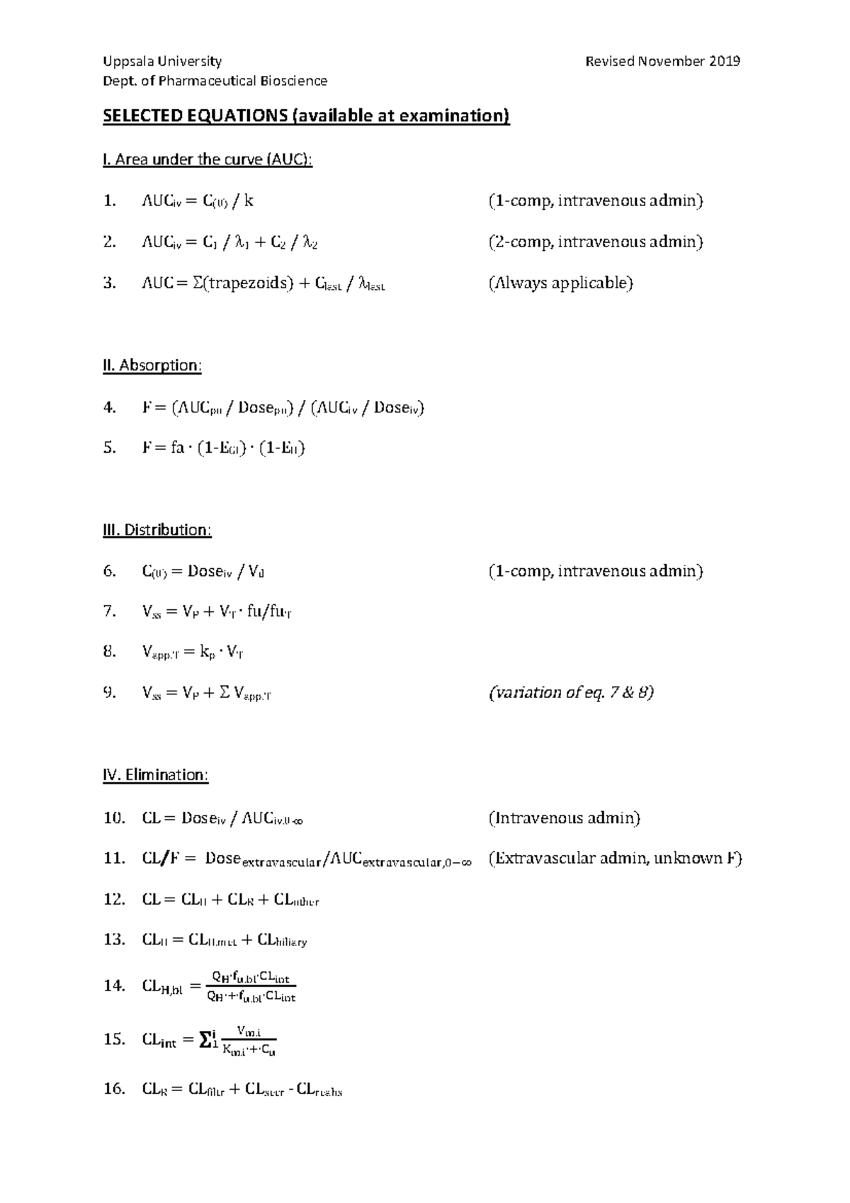 List of formulas - Uppsala University Revised November 2019 Dept. of ...