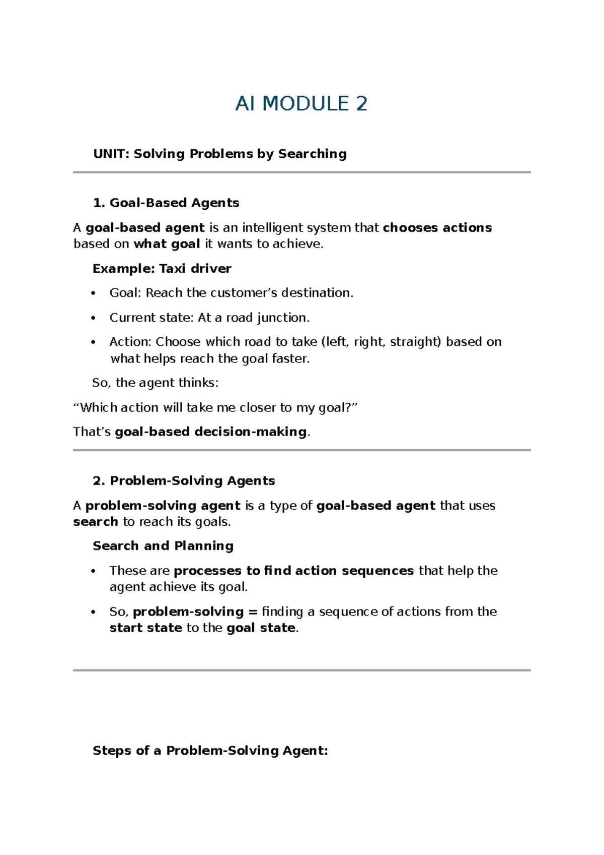 AI MODULE 2: Problem Solving and Search Strategies - Studocu