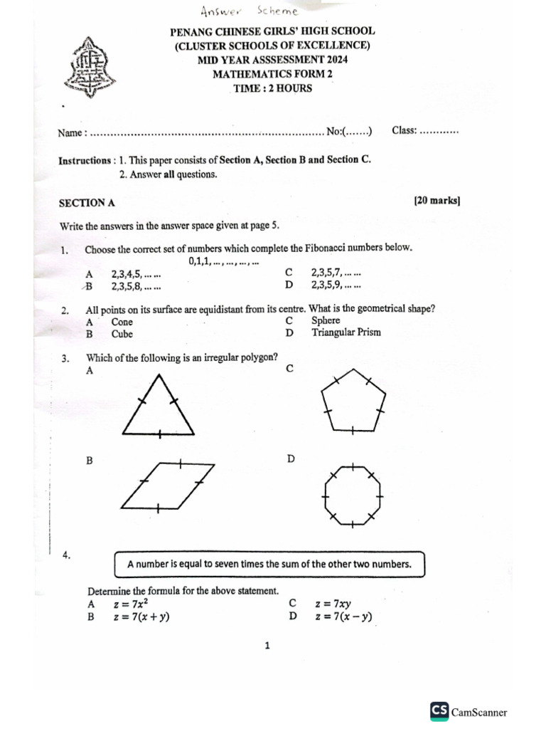 F2 Math Set4 | PDF