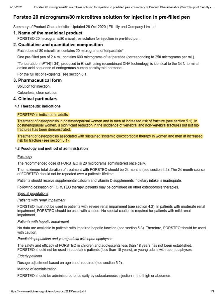 Forsteo 20 Micrograms - 80 Microlitres Solution For Injection in Pre ...