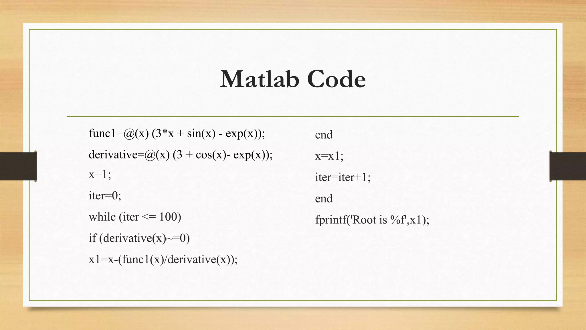 Newton Raphson Method-Numerical Analysis-MATLAB Code - Docsity
