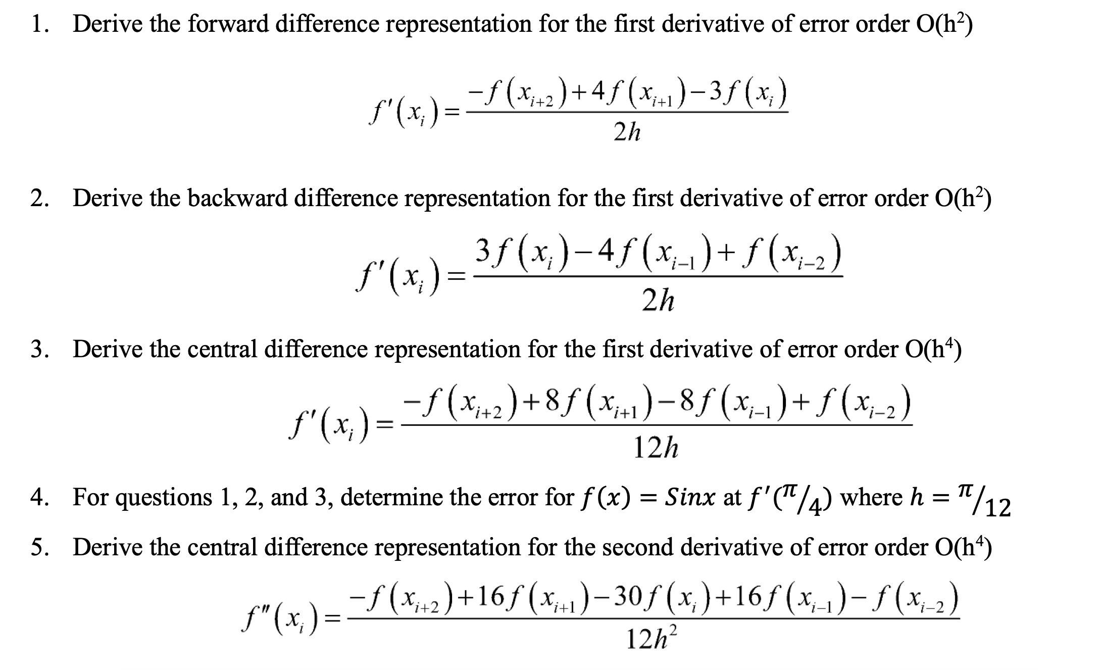 Solved There are various finite difference formulas for | Chegg.com