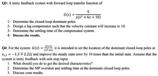 Solved Q3. The forward path transfer function of a unity | Chegg.com