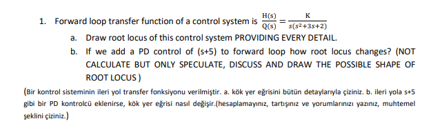 Solved 1. Forward loop transfer function of a control system | Chegg.com