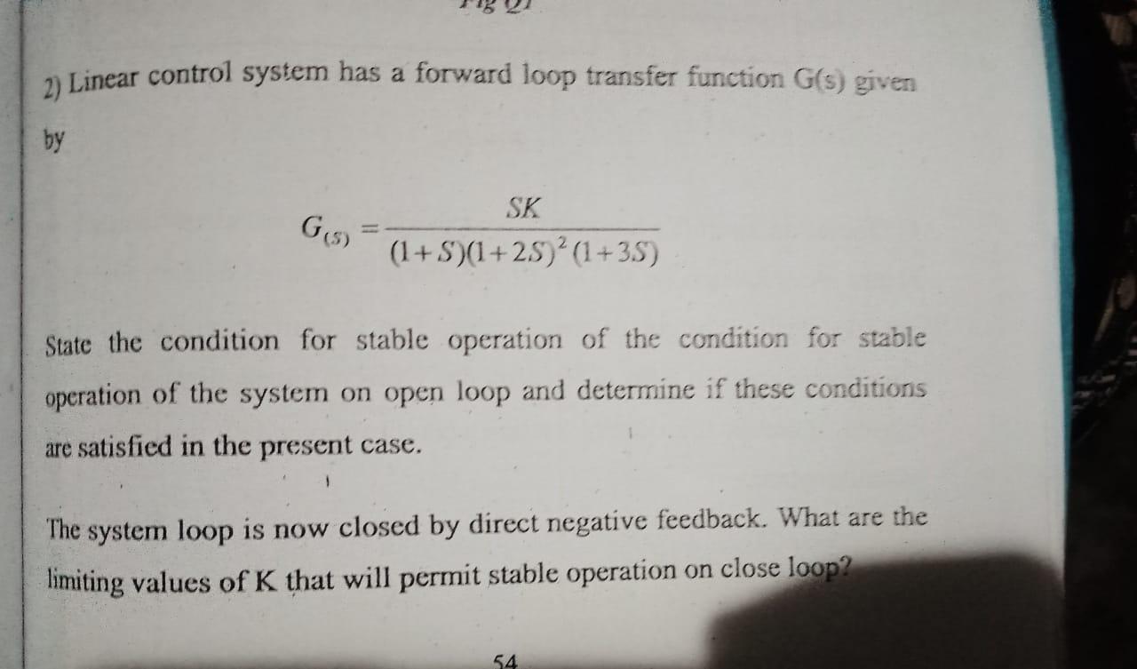 Solved 2) Linear control system has a forward loop transfer | Chegg.com