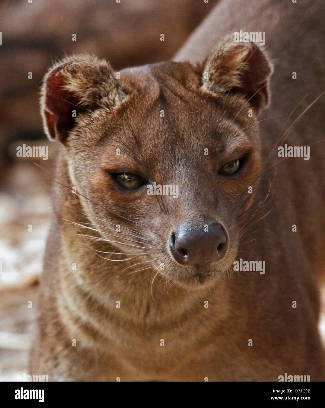 Madagascar Fossa. Top predator, lemur hunter. Portrait, frontal view ...