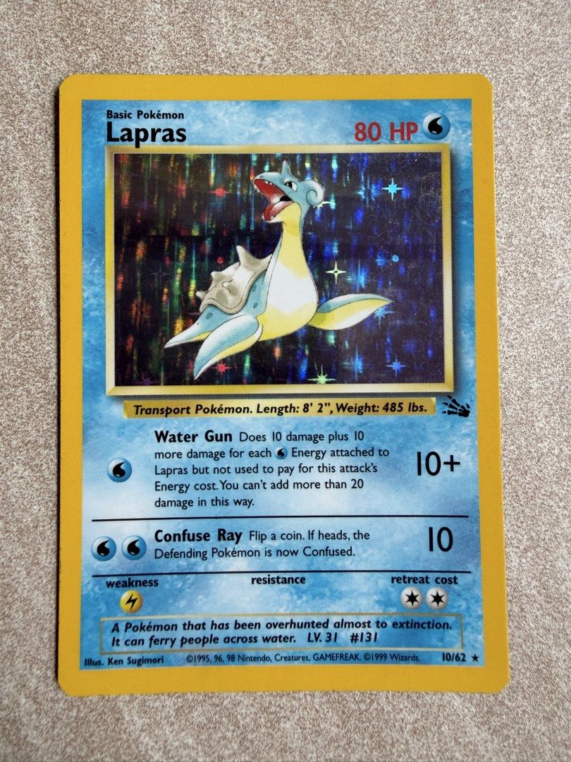 [1] Lapras Fossil Holo Pokemon Card - NOT Pikachu Gengar Charizard Mew ...